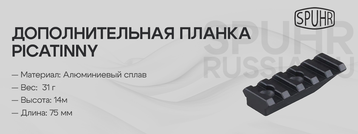 Дополнительная планка A-0032 Picatinny длиной 75 мм предназначена для крепления кронштейнов и аксессуаров Spuhr.