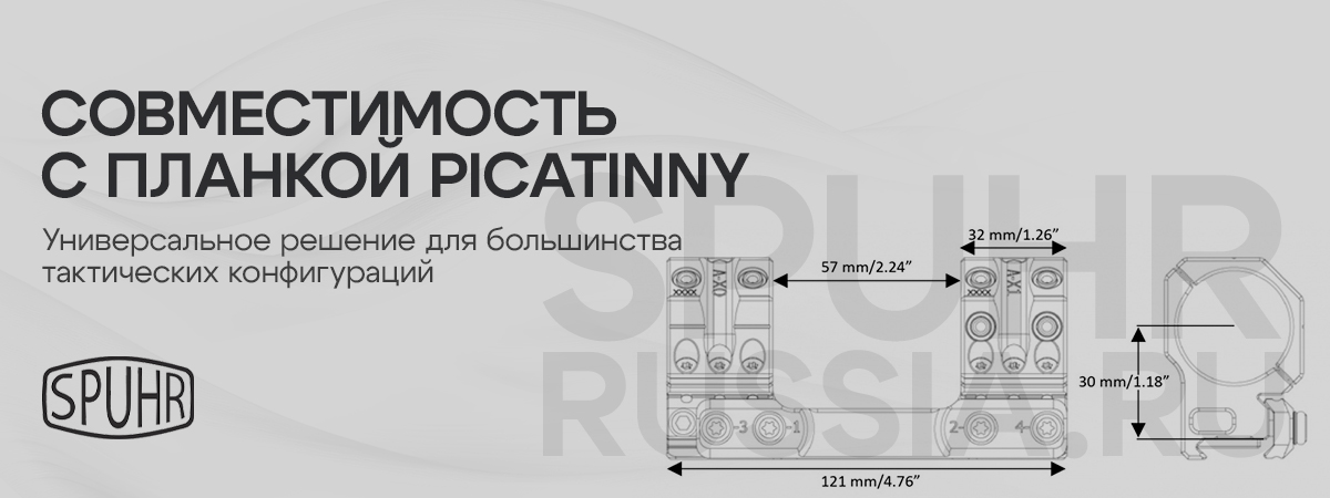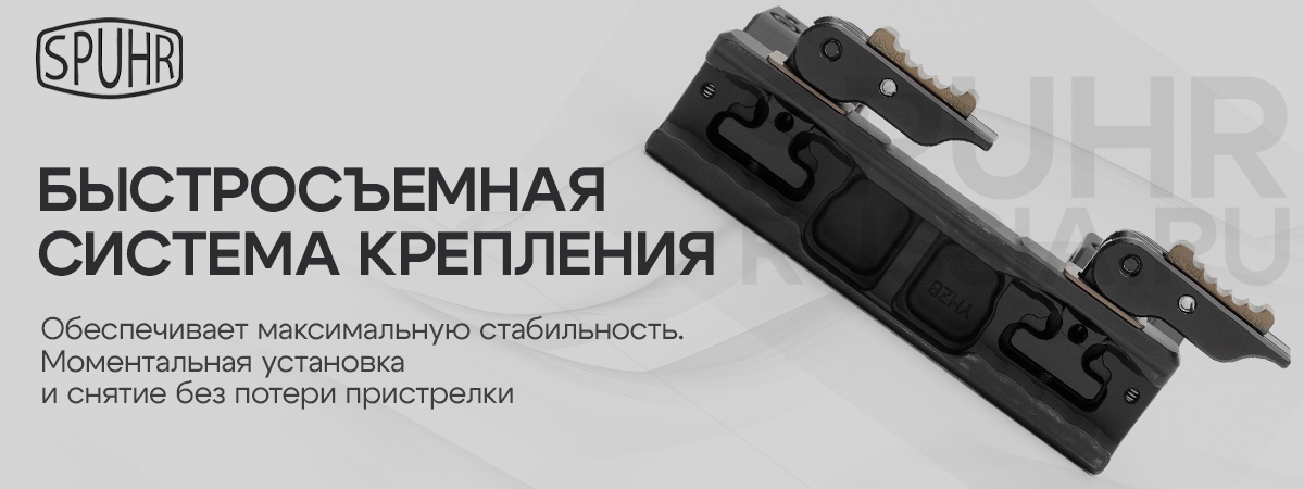 Производитель гарантирует качество любого крепления от Spuhr, а так же стабильное удержание СТП при их использовании. Возможна установка различных аксессуаров с системой "ISMS" (Ideal Scope Mount System - в буквальном переводе "идеальная система крепления оптики").