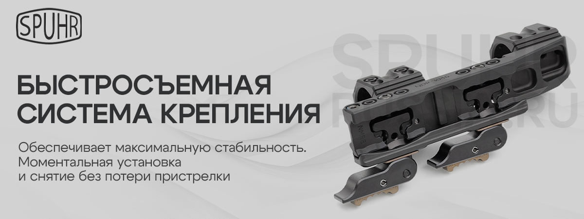 Производитель гарантирует качество любого крепления от Spuhr, а так же стабильное удержание СТП при их использовании. Возможна установка различных аксессуаров с системой "ISMS" (Ideal Scope Mount System - в буквальном переводе "идеальная система крепления оптики").
