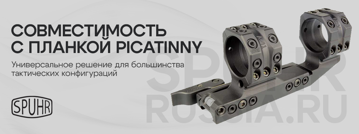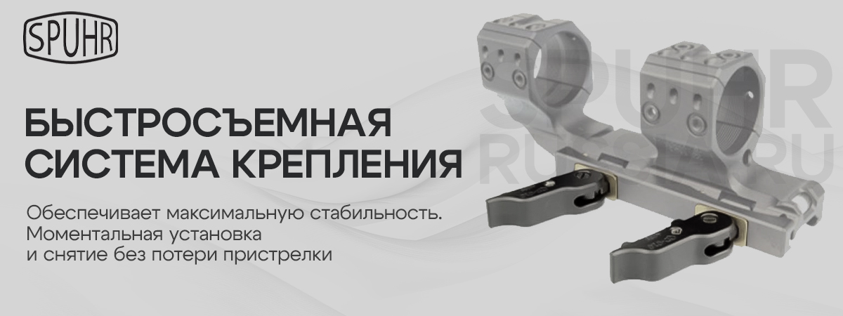 Производитель гарантирует качество любого крепления от Spuhr, а так же стабильное удержание СТП при их использовании. Возможна установка различных аксессуаров с системой "ISMS" (Ideal Scope Mount System - в буквальном переводе "идеальная система крепления оптики").