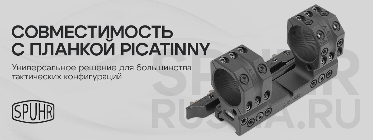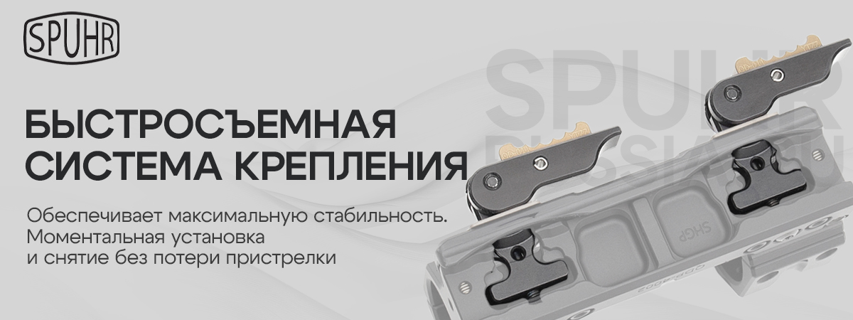 Производитель гарантирует качество любого крепления от Spuhr, а так же стабильное удержание СТП при их использовании. Возможна установка различных аксессуаров с системой "ISMS" (Ideal Scope Mount System - в буквальном переводе "идеальная система крепления оптики").
