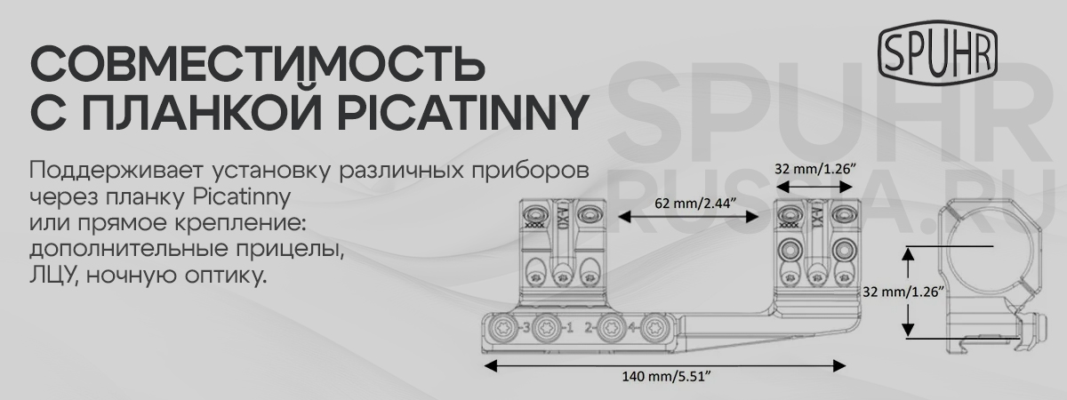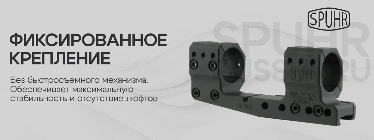 Производитель гарантирует качество любого крепления от Spuhr, а так же стабильное удержание СТП при их использовании. Возможна установка различных аксессуаров с системой "ISMS" (Ideal Scope Mount System - в буквальном переводе "идеальная система крепления оптики").