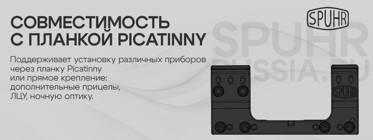 Производитель гарантирует качество любого крепления от Spuhr, а так же стабильное удержание СТП при их использовании. Возможна установка различных аксессуаров с системой "ISMS" (Ideal Scope Mount System - в буквальном переводе "идеальная система крепления оптик