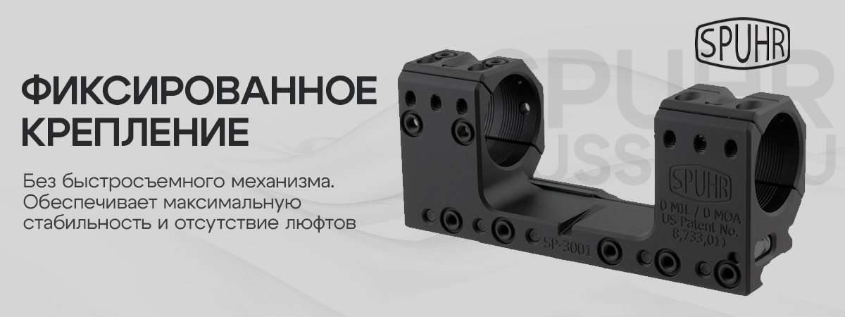 Производитель гарантирует качество любого крепления от Spuhr, а так же стабильное удержание СТП при их использовании. Возможна установка различных аксессуаров с системой "ISMS" (Ideal Scope Mount System - в буквальном переводе "идеальная система крепления оптики").