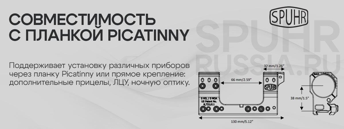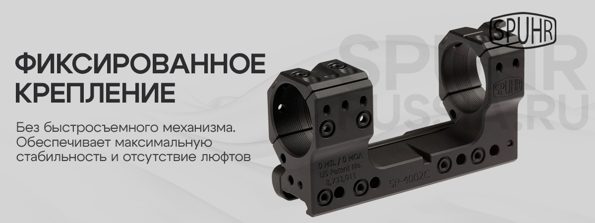 Производитель гарантирует качество любого крепления от Spuhr, а так же стабильное удержание СТП при их использовании. Возможна установка различных аксессуаров с системой "ISMS" (Ideal Scope Mount System - в буквальном переводе "идеальная система крепления оптики").