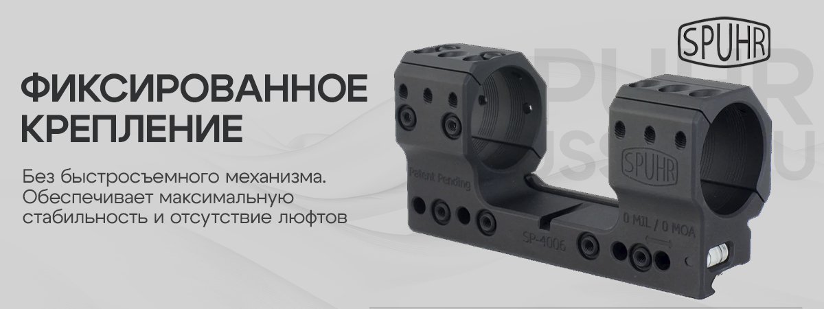 Производитель гарантирует качество любого крепления от Spuhr, а так же стабильное удержание СТП при их использовании. Возможна установка различных аксессуаров с системой "ISMS" (Ideal Scope Mount System - в буквальном переводе "идеальная система крепления оптики").