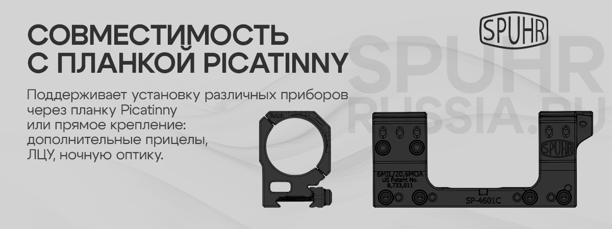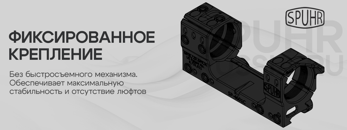 Производитель гарантирует качество любого крепления от Spuhr, а так же стабильное удержание СТП при их использовании. Возможна установка различных аксессуаров с системой "ISMS" (Ideal Scope Mount System - в буквальном переводе "идеальная система крепления оптики").