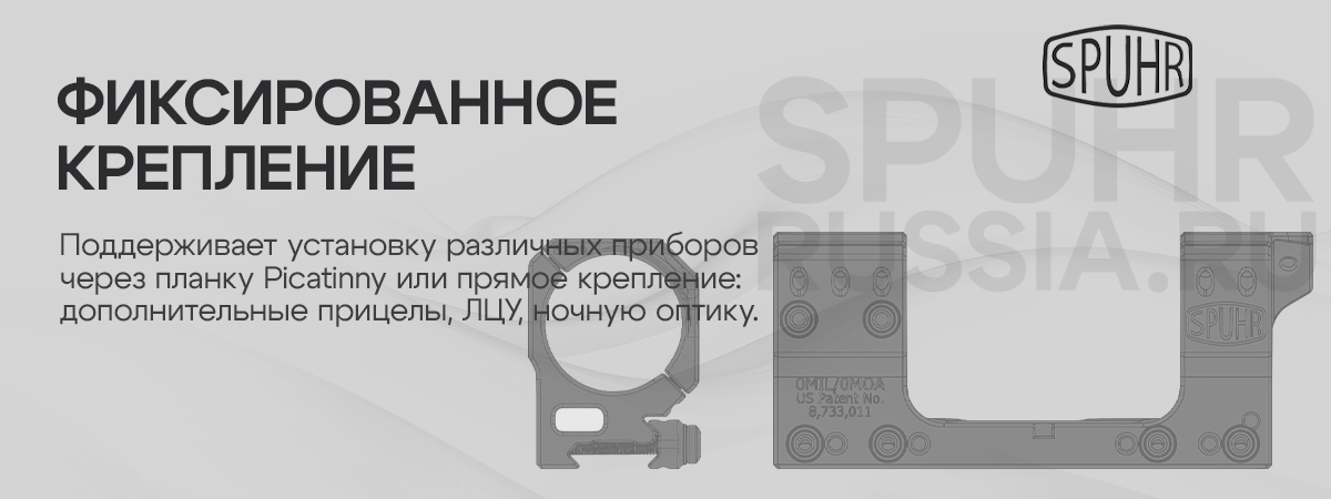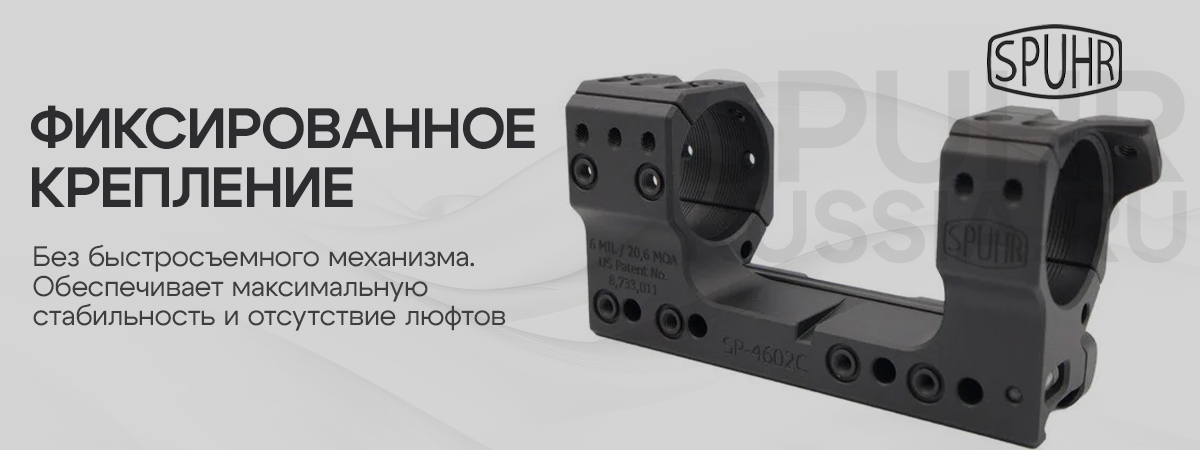 Производитель гарантирует качество любого крепления от Spuhr, а так же стабильное удержание СТП при их использовании. Возможна установка различных аксессуаров с системой "ISMS" (Ideal Scope Mount System - в буквальном переводе "идеальная система крепления оптики").