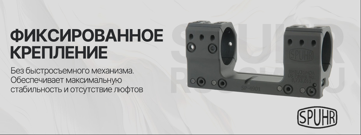 Spuhr гарантирует надёжное крепление и стабильное удержание оптического прицела. Система монтажа совместима с аксессуарами ISMS (Ideal Scope Mount System).
